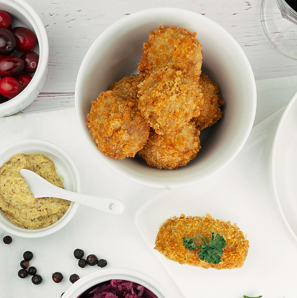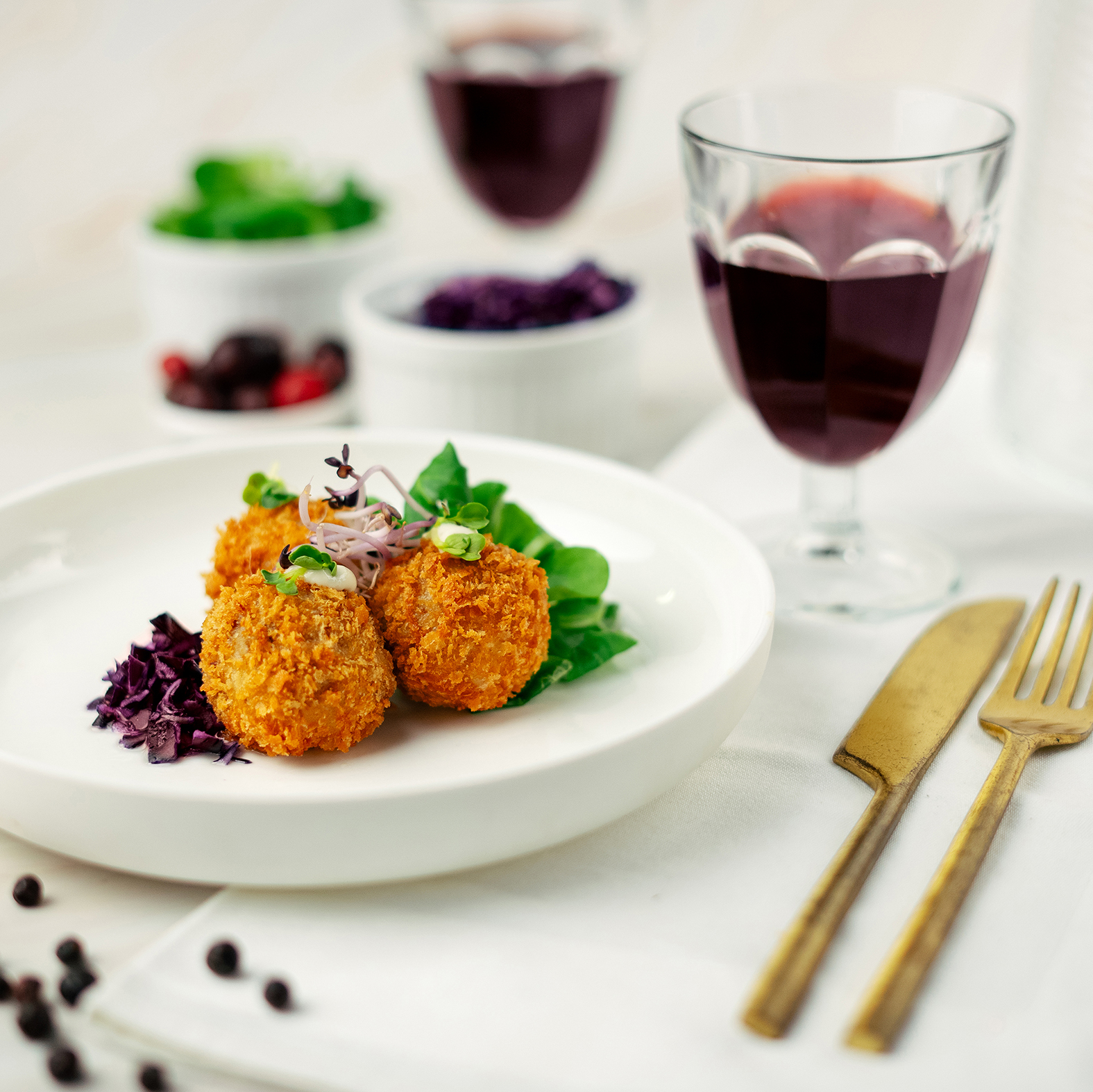 Holtkamp Horeca’s game meat bitterballen and mini croquettes are a seasonal specialty. The salpicon is made with fresh game stock, European venison, red wine, onions, juniper berries, and gingerbread. The crispy crust gives these bitterballen a satisfying bite.