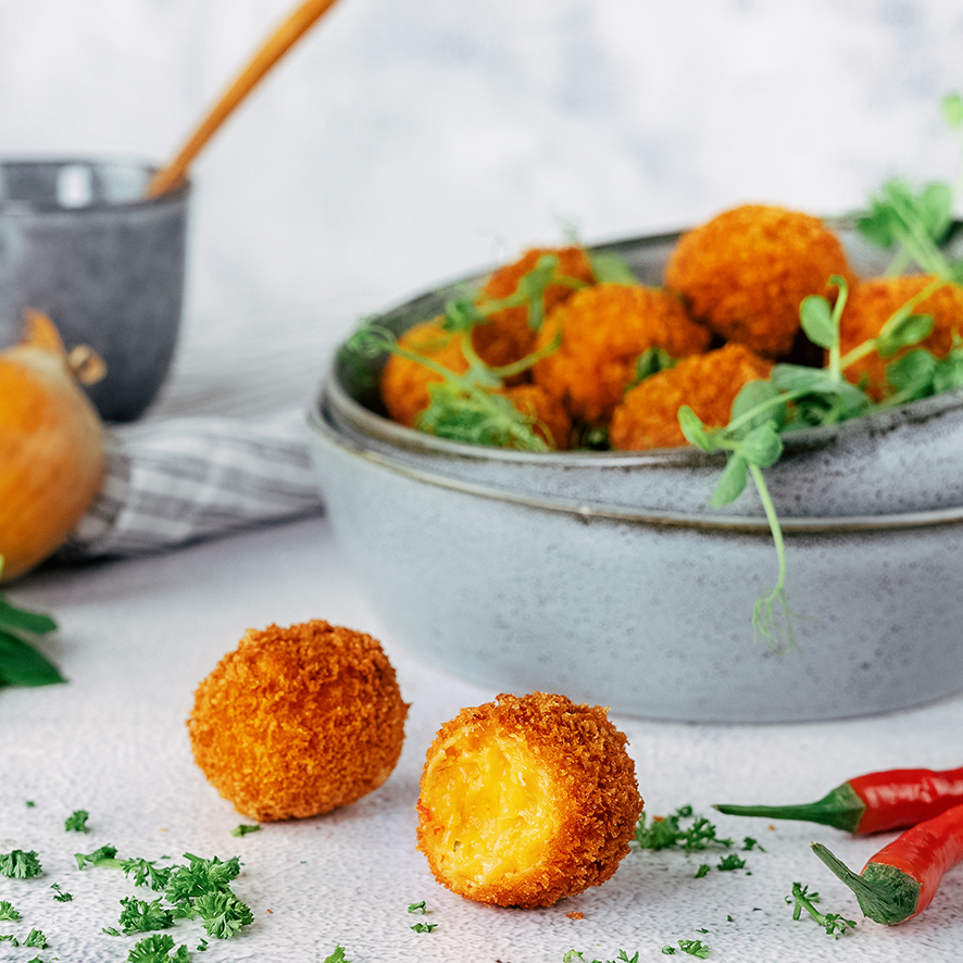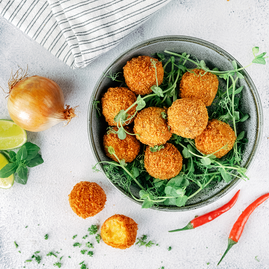 Holtkamp Horeca’s lobster bitterballen stand out thanks to the fine flavor of lobster, cognac, and fresh herbs. The crispy coating is, of course, also present.