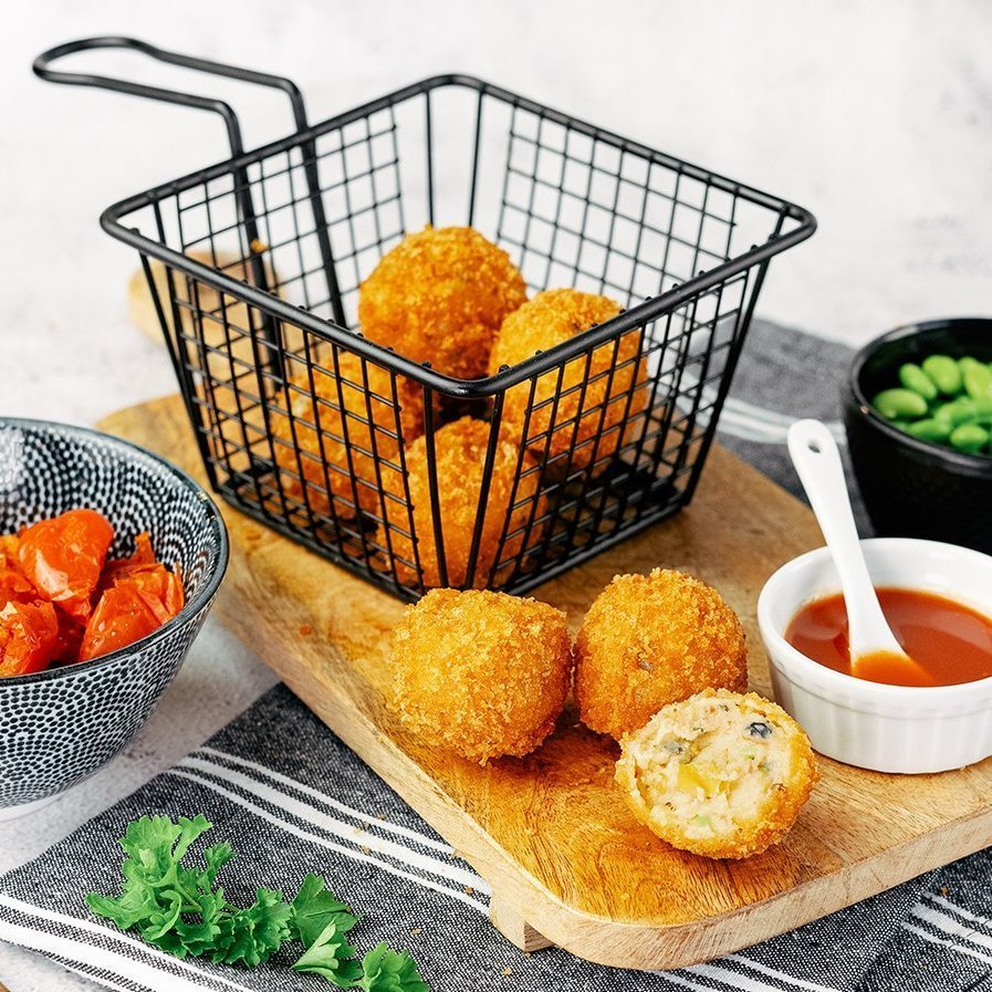 A surprising combination of sweet, sour, and salty flavors, all wrapped in a crispy breadcrumb coating.