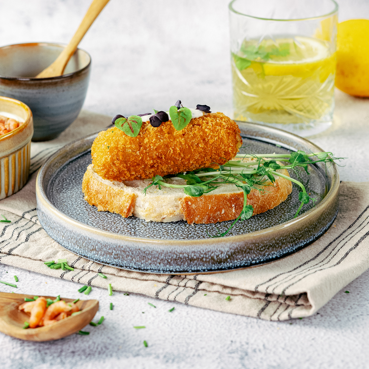 A Holtkamp Horeca classic. The foundation of our renowned shrimp croquette is Dutch North Sea shrimp. Ingredients such as fresh onion, sea salt, herbs, and spices give the creamy ragout its delightful taste.
