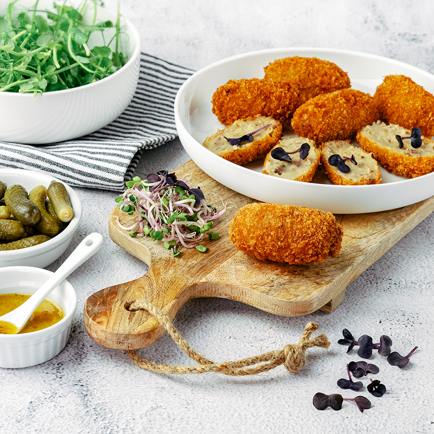 A Holtkamp Horeca classic for over 50 years. In 1969, Cees Holtkamp first made the veal croquette—short and thick, filled with diced veal, fresh ingredients, and a crisp breadcrumb crust.