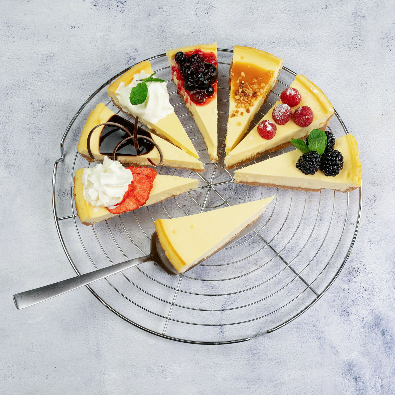 A rich shortbread crumble forms the base. On top, a smooth filling of Danish cream cheese. Garnish creatively or enjoy the pure cheesecake.