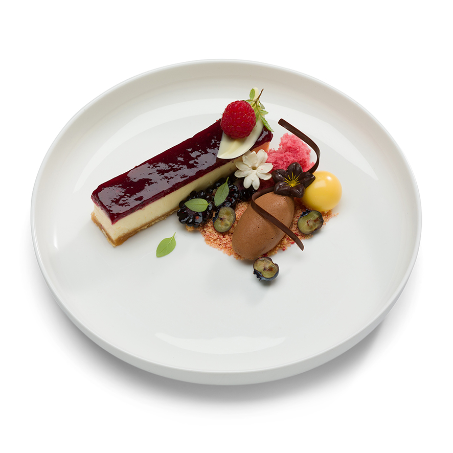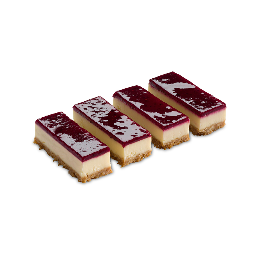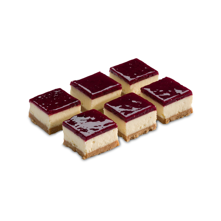 Buttery crumble crust with Danish cream cheese filling. Topped with a layer of blackcurrant and redcurrant jelly and powdered sugar.