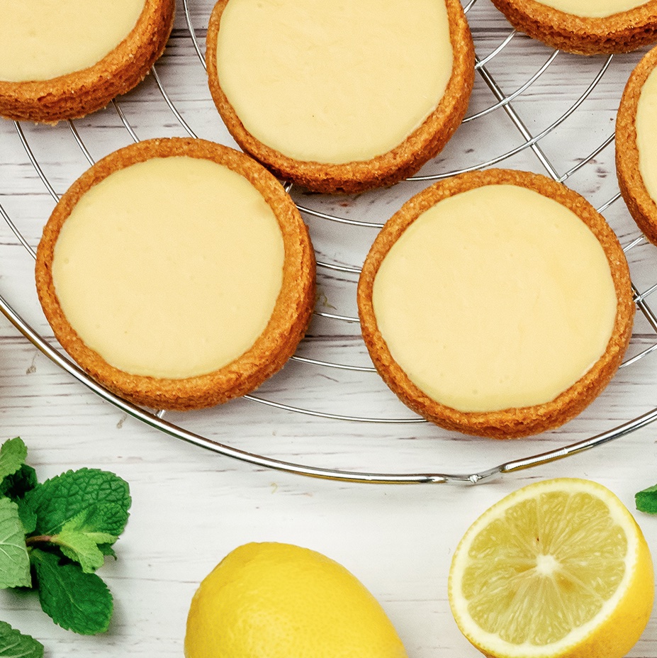 The tartelette lemon curd is a small individual tart. The pastry base is filled with lemon curd.