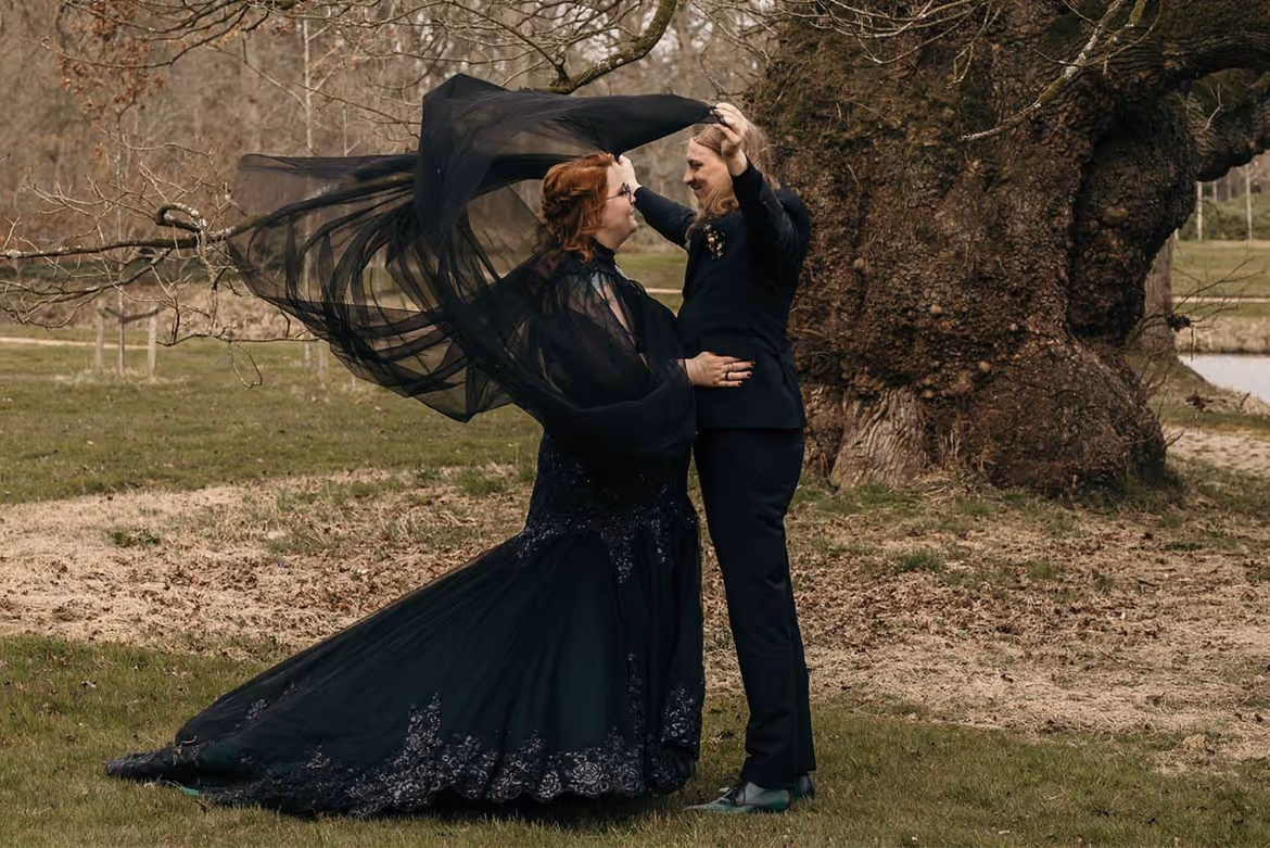 Bruiloft met een zwart randje, dit bruidspaar durfde anders te zijn