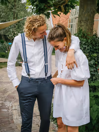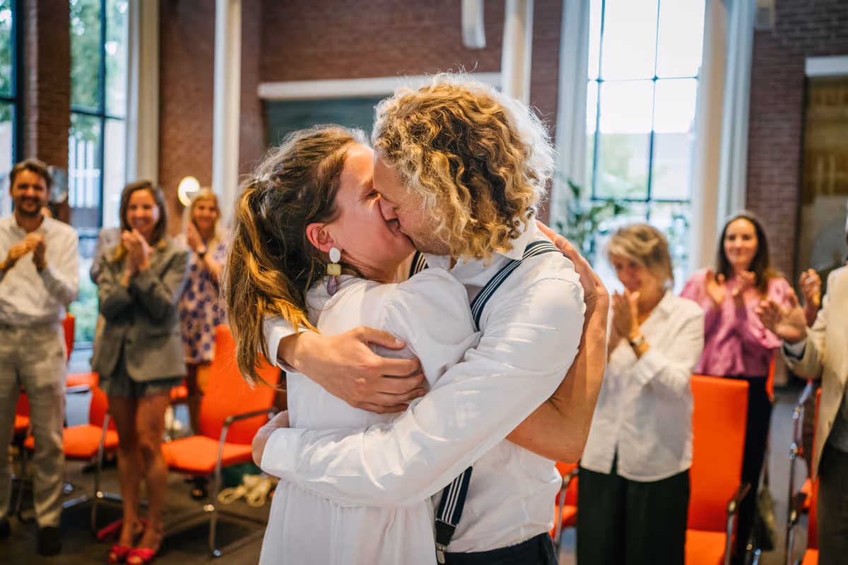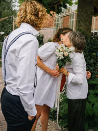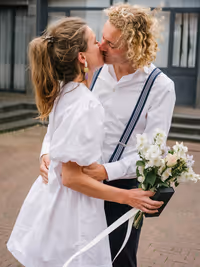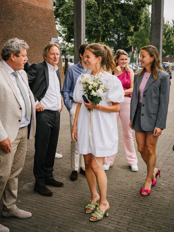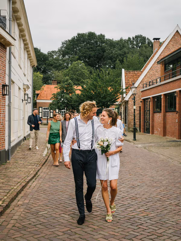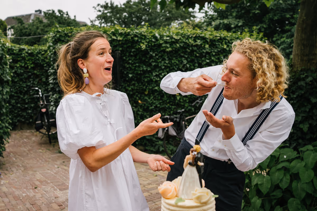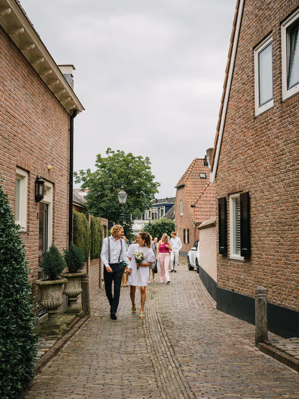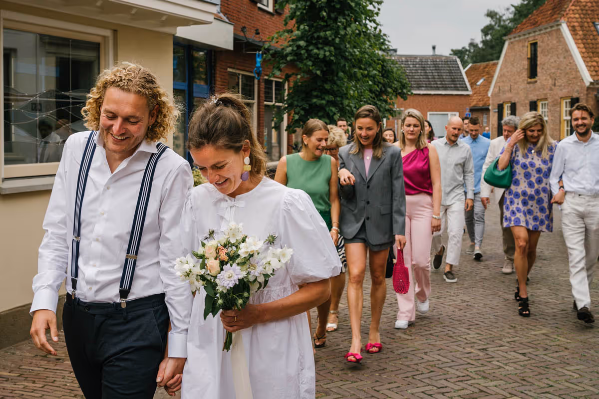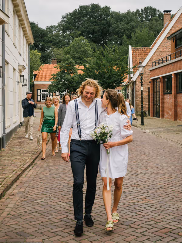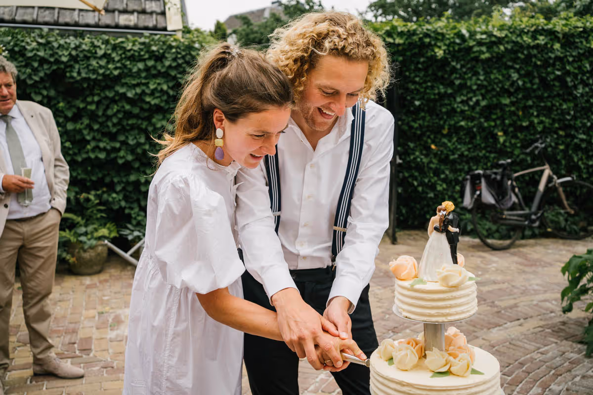 Een bruiloft hoeft niet persé groots en uitbundig te zijn om bijzonder te zijn. Het draait immers om jullie liefde! Dit lieve bruidspaar laat zien dat een intieme, gezellige trouwdag net zo magisch kan zijn. Zonder een dure trouwjurk, exclusieve trouwlocatie of een groot feest. Dit bruidspaar koos ervoor,om omringd door hun dierbaarste geliefden, vanuit huis samen te wandelden naar het gemeentehuis om te trouwen. Om vervolgens in de tuin van het ouderlijk huis samen in alle rust na te genieten en de liefde te vieren. Wél met een heerlijke trouwtaart en een officieel proostmoment.