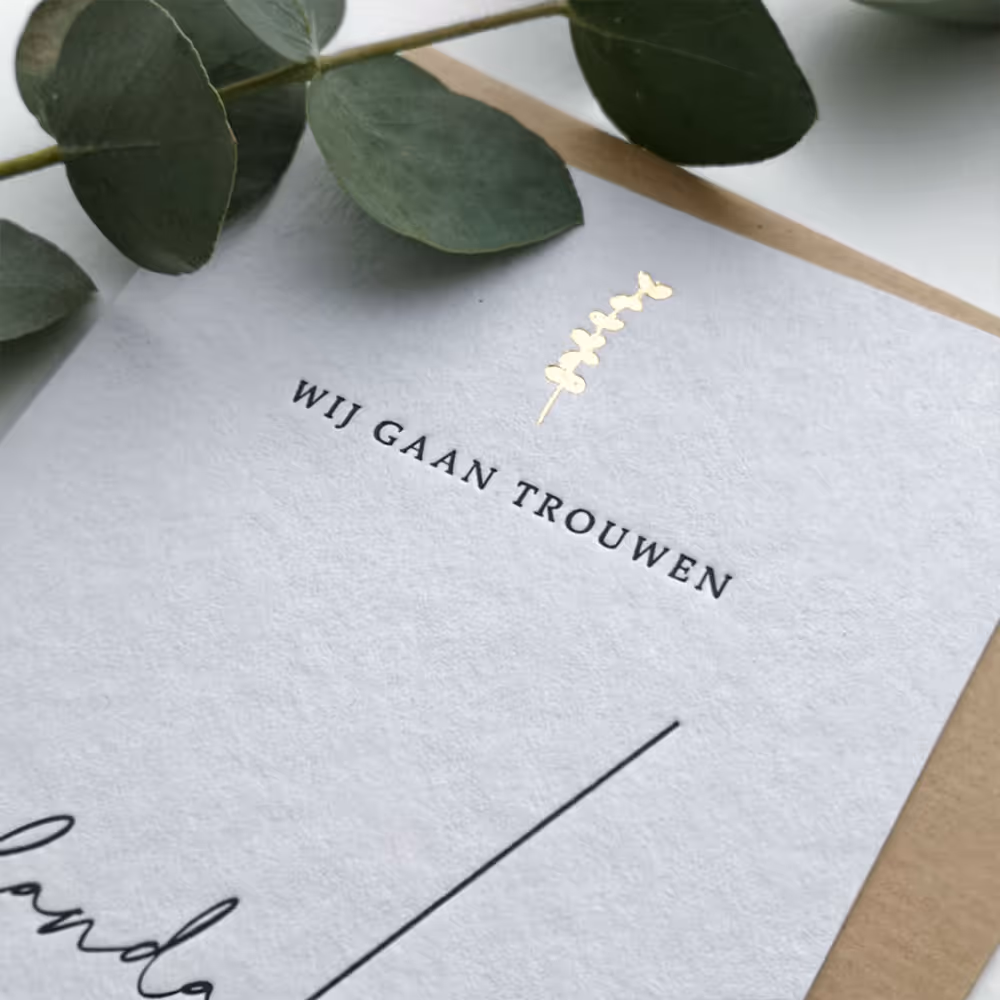 Nadat jullie een datum hebben gevonden kun je eindelijk wat specifieker gaan plannen, te leuk!! wil je dat mensen de datum alvast noteren, stuur dan een save the date kaart. Dit kun je al een jaar voor jullie datum toen. Zo kan iedereen dit al mooi vast in de agenda zetten. Bij de save the date kondig je alleen nog maar de datum aan en eventueel informatie voor gasten om rekening mee te houden, een trouwkaart komt later… bij de drukker kun je alles tegelijkertijd uitkiezen zodat alles bij elkaar past.