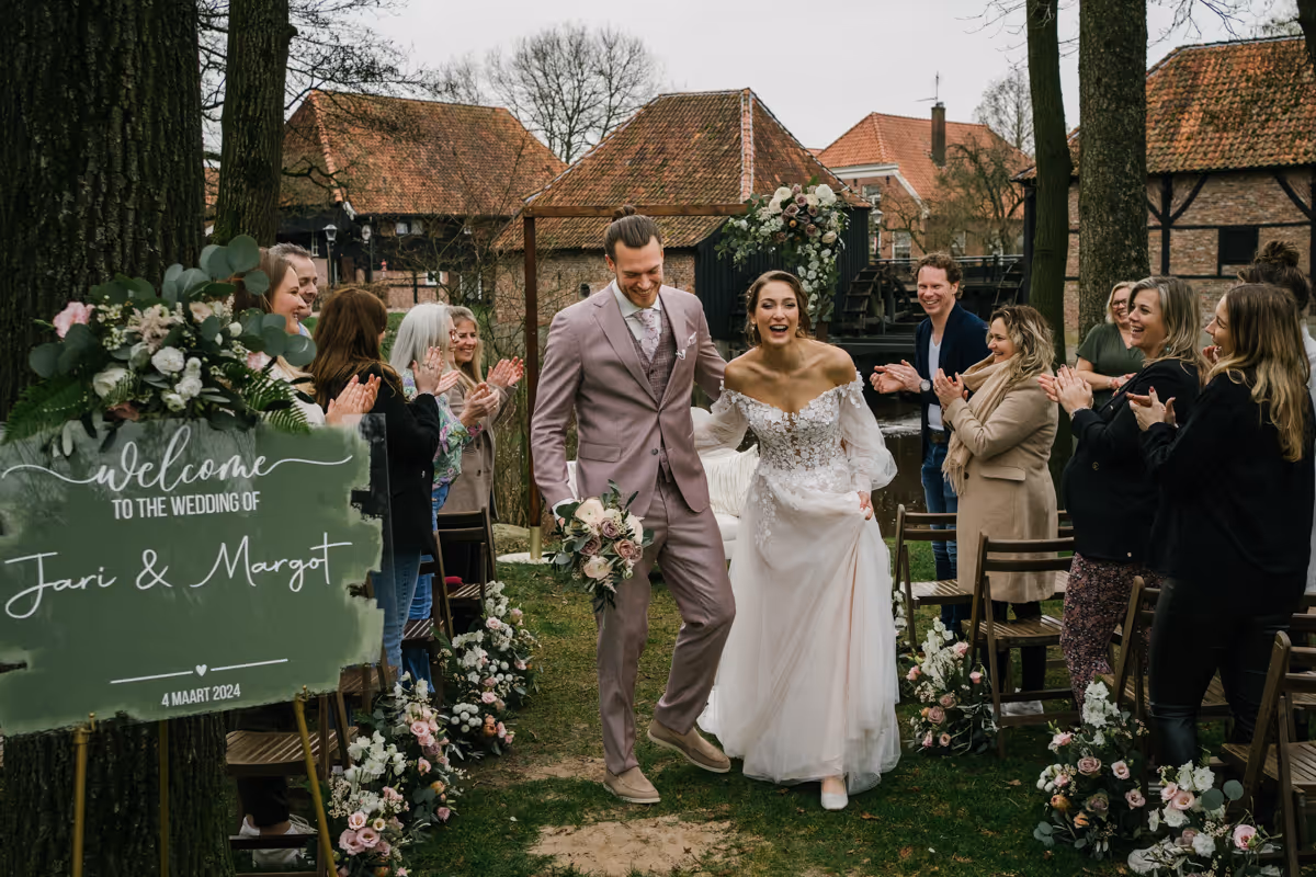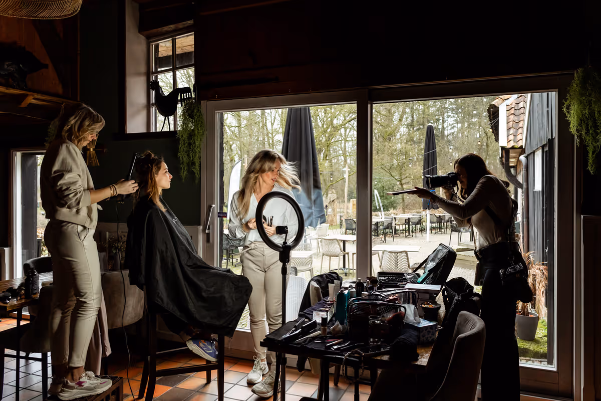 We nemen je graag mee in de betoverende sfeer van deze Styled Shoot. Met maar liefst twee fotografen, een videograaf en een behind the scenes fotograaf hebben we aan beeldmateriaal geen gebrek! Laat je inspireren door de schitterende bloemstukken, de prachtige kleding, het mooie welkomstbord en de overige trendy details. Van een romantische first look, tot een intieme ceremonie en een geweldige trouwauto. Alles is vastgelegd om jullie te inspireren zodat jullie deze toffe styling terug kunnen laten komen op jullie bruiloft.