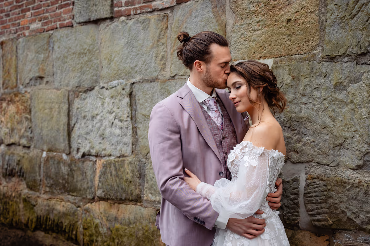 Voor deze shoot waren we te gast bij de locatie de Watermölle in Haaksbergen. Deze locatie heeft zoveel verschillende facetten dat je niet uitgekeken raakt. Aangezien het weer droog bleef, hebben we gekozen om de ceremonie buiten te laten plaatsvinden, maar bij slecht weer is er ook genoeg ruimte binnen om een ceremonie te houden. Daarnaast beschikt de locatie over diverse hotelkamers, die naast slaapvertrek ook gebruikt kunnen worden als ruimte om je klaar te maken.