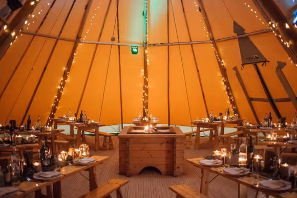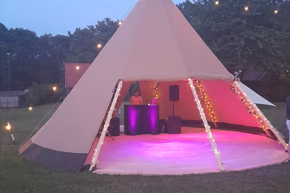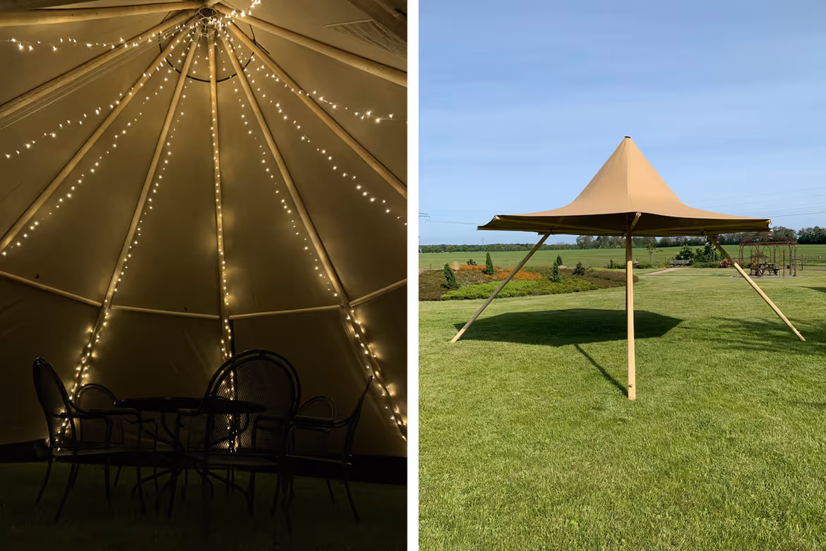 Begin jullie droombruiloft met een intieme ceremonie in een Tipi Seto, ook wel bekend als de “tentparasol.” Perfect voor een romantische en intieme ceremonie. Deze tent heeft een magische beleving die jullie gasten nog lang zullen herinneren.
