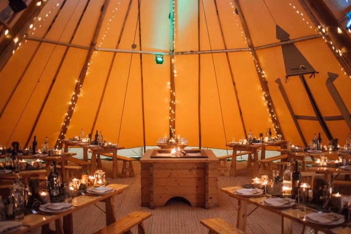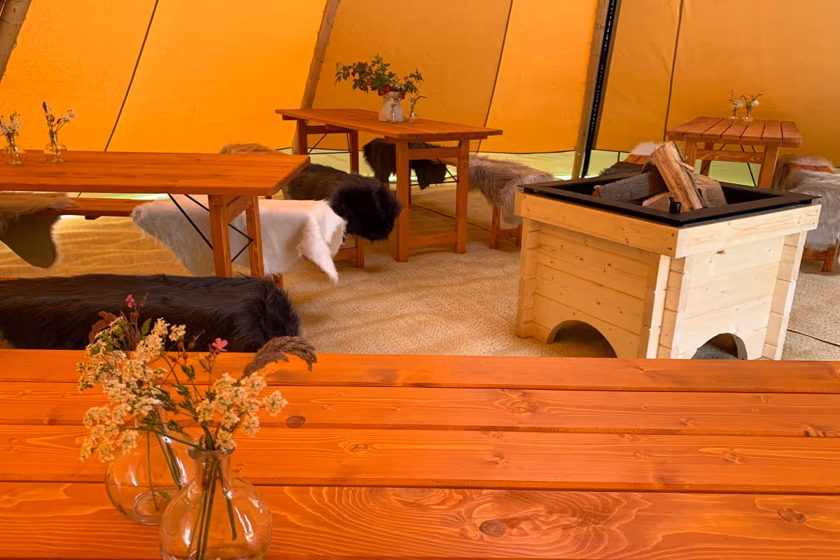 Samen dineren onder de sterrenhemel, omringd door de natuur en heel veel kleine lichtjes. Met de Tipi Fyto kun je een fantastische sfeer organiseren voor jullie en jullie gasten tijdens jullie zorgvuldig gekozen diner. Wil je nu niet met je mooie schoenen in bijvoorbeeld het weiland zitten, dan kun je deze toffe tent ook huren met een op maat gemaakte Douglas vlondervloer voor net dat beetje extra comfort.