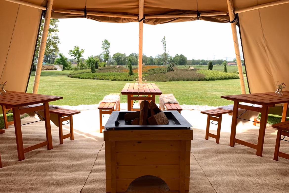Of je nu gaat voor een intieme bruiloft met 40 gasten of een groter feest wilt met misschien wel 100 gasten. Dan kun je zelfs twee Tipi Fyto’s koppelen om er één gezellige ruimte van te maken. Heel handig!