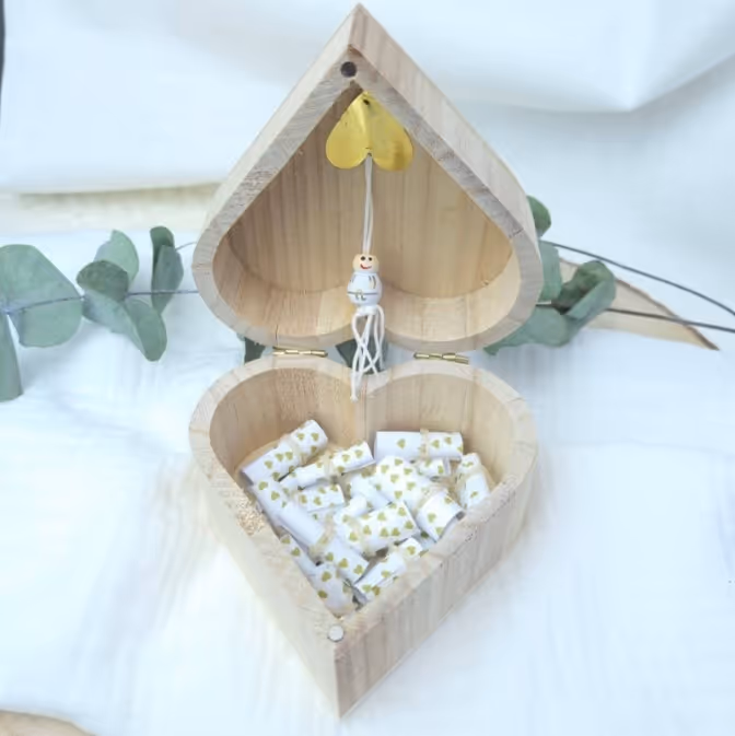 Verras haar met een super lief hartenkistje met 25 complimentjes. Super leuk om de laatste weken voor het huwelijk er elke dag eentje te kunnen lezen. Aan de binnenkant van het kistje zit ook nog een schattig engeltje.